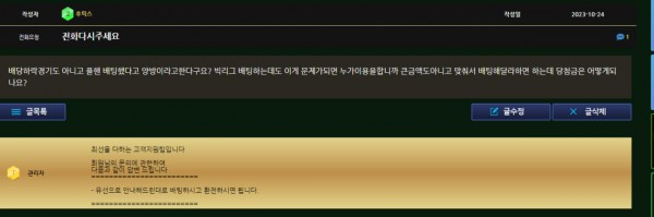개악질새끼들 ㅋㅋ플핸 배팅하지말라는 규정도없으면서 플핸배팅했다고 양방의심배팅거리면서 후적놓더니 아이디짤라버리는데