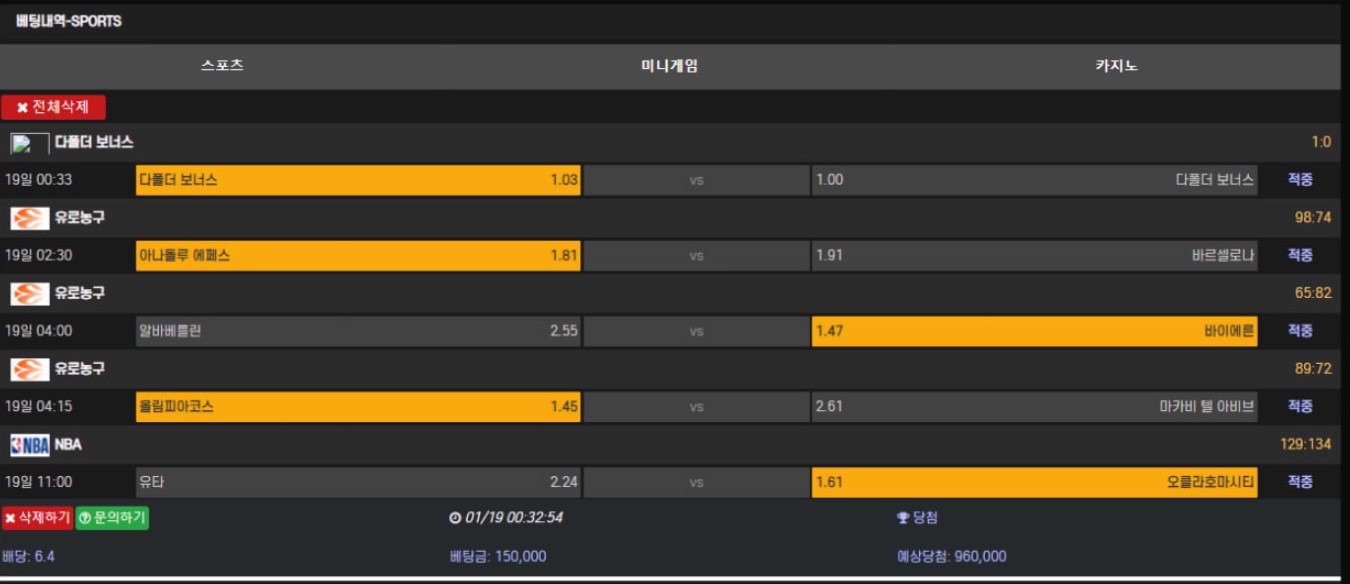 맨첨에 오클라호마 언더 낑겨있는게 배당 문제있다고 제외하고 재베팅하라해서