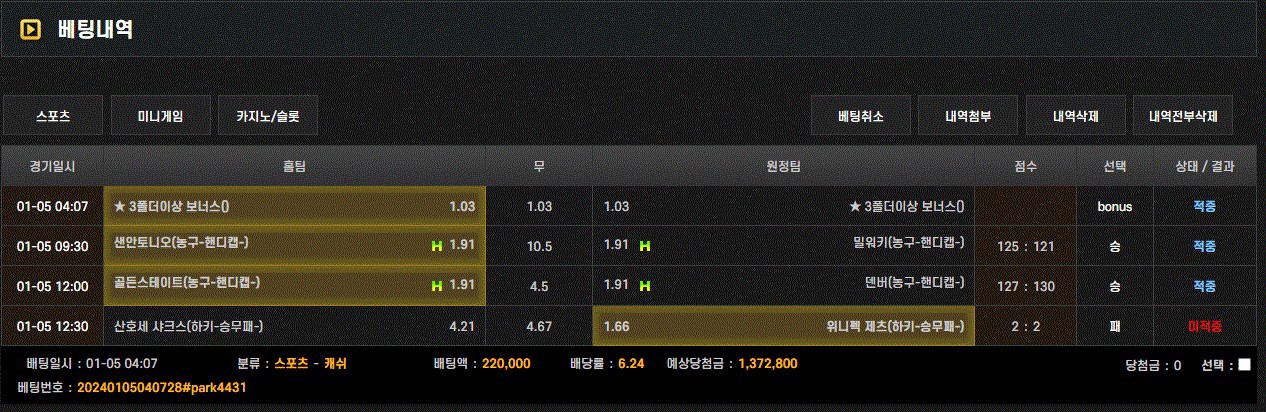 이틀 전에 배팅하고 당첨되서 환전 누르러 들어갔는데 막폴 낙첨 처리 해놨길래 텔레그램 문의하니까 프로그램 오류라고 다시 적중처리를 해줬습니다