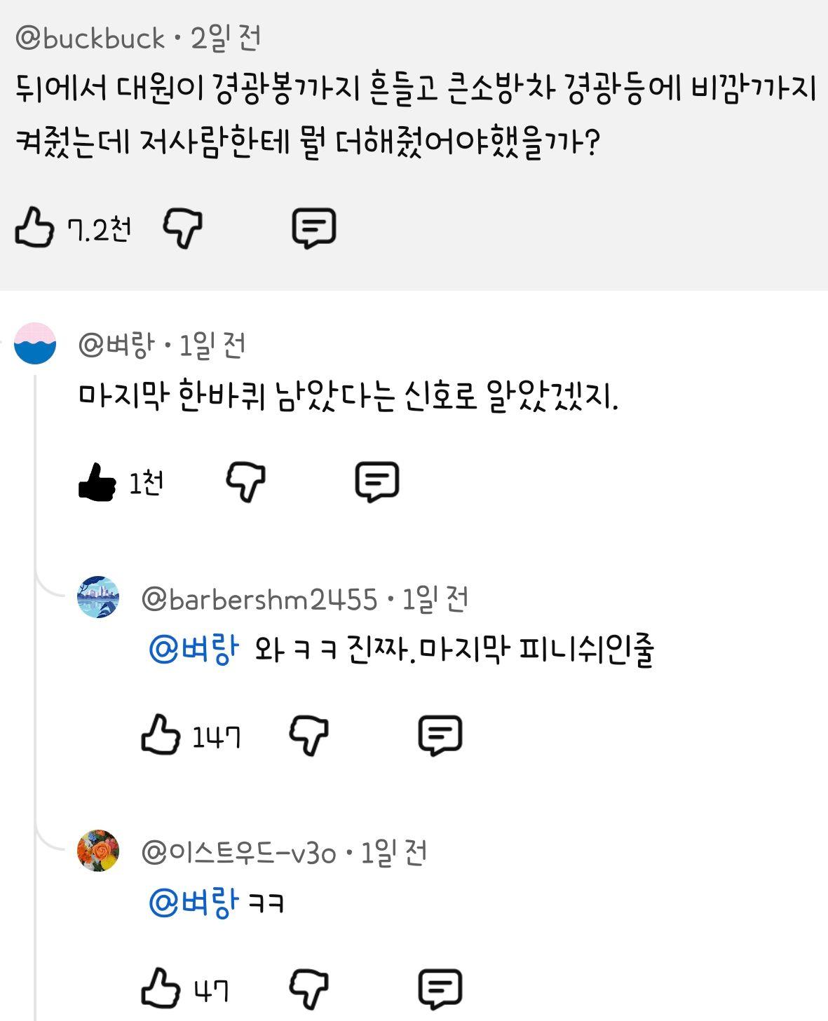 119대원이 전방 위험을 알리고있는 상황