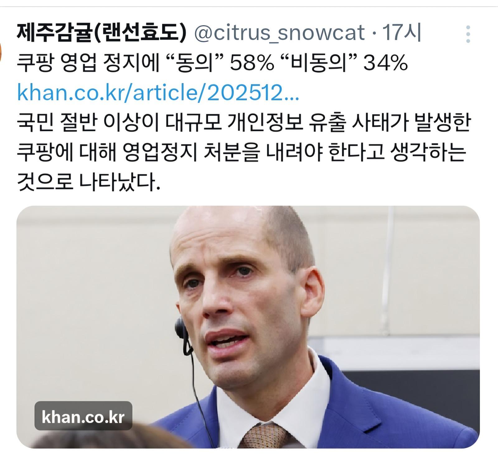 쿠팡 영업 정지에 "동의 " 58%"