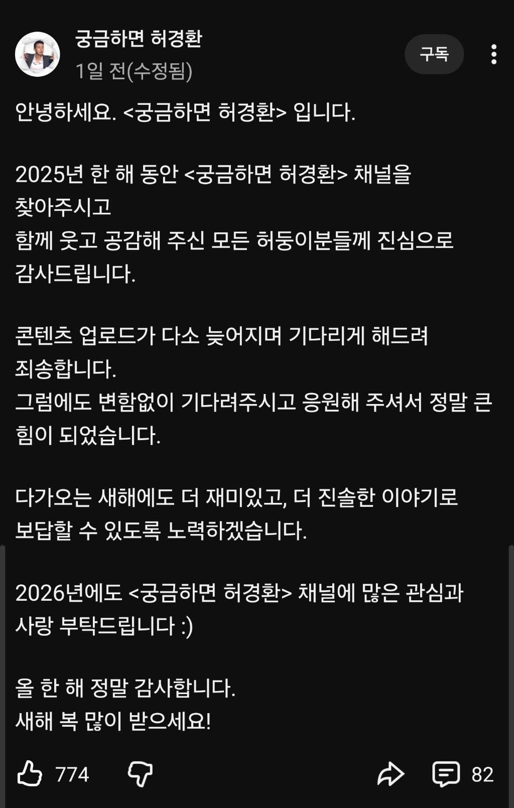 허경환 유튜브 채널 댓글 근황