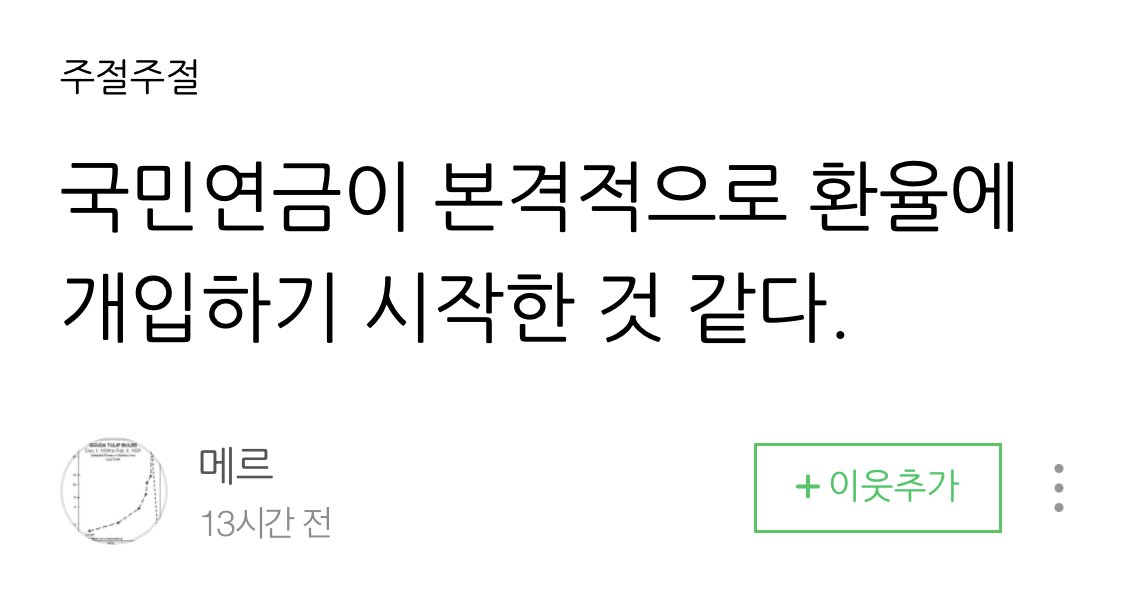 국민연금이 본격적으로 환율에 개입하기 시작한 것 같다