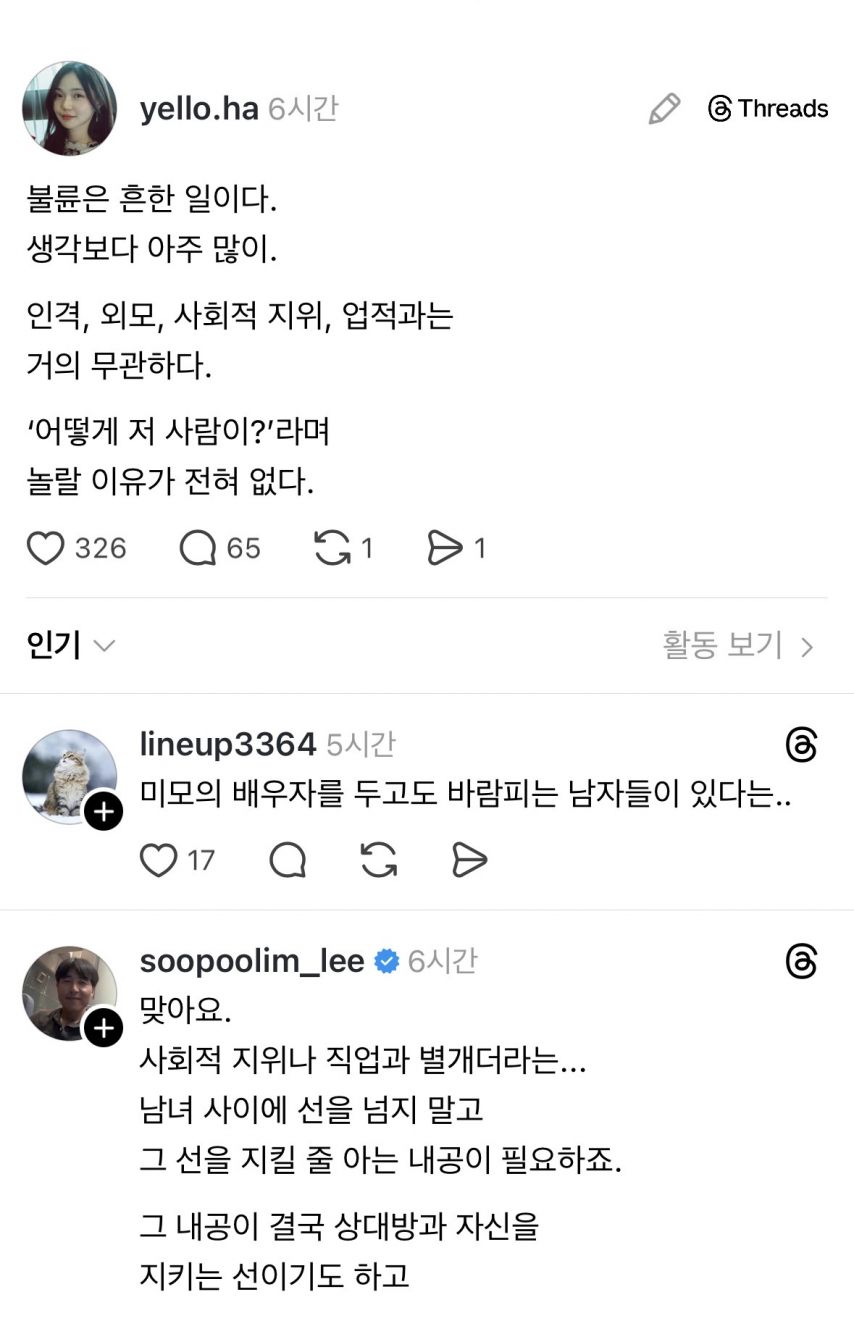 불륜은 OO이랑 관계없다더라