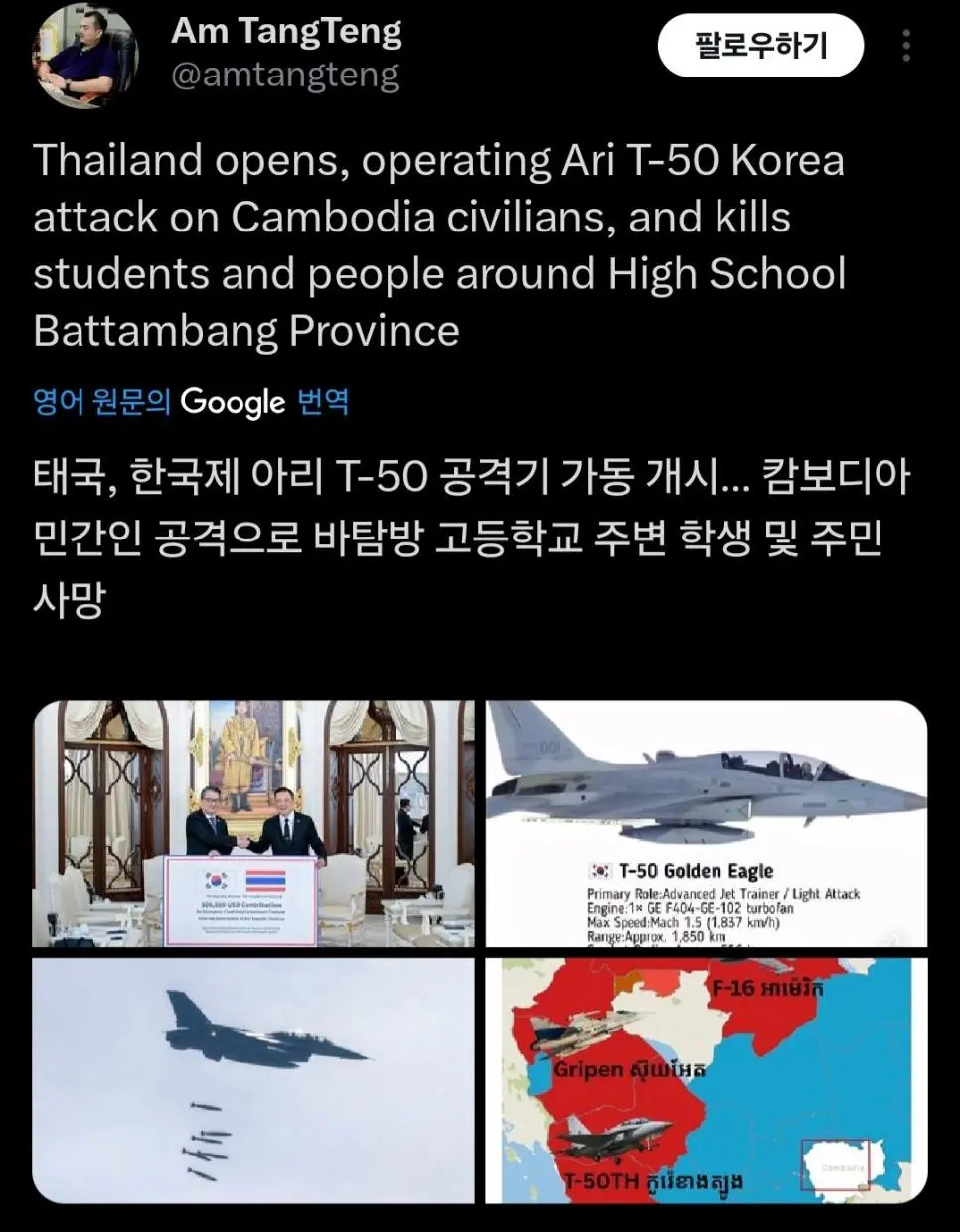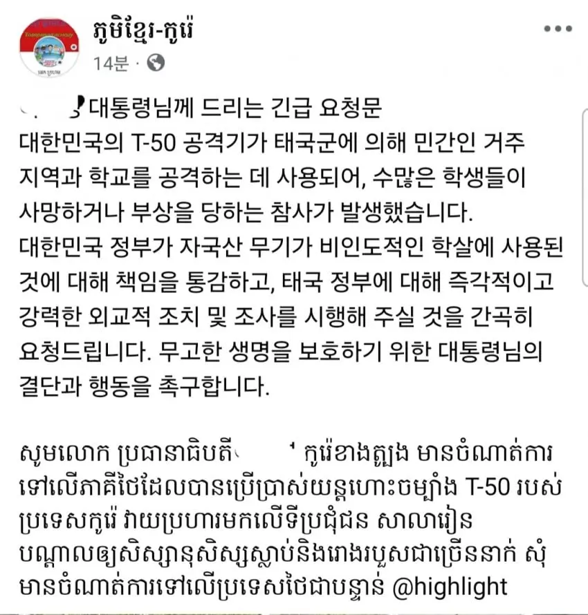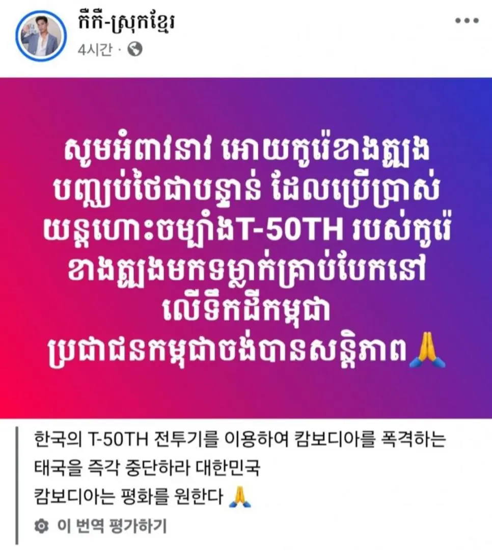 캄보디아 '태국과의 전쟁에 한국도 책임있다'