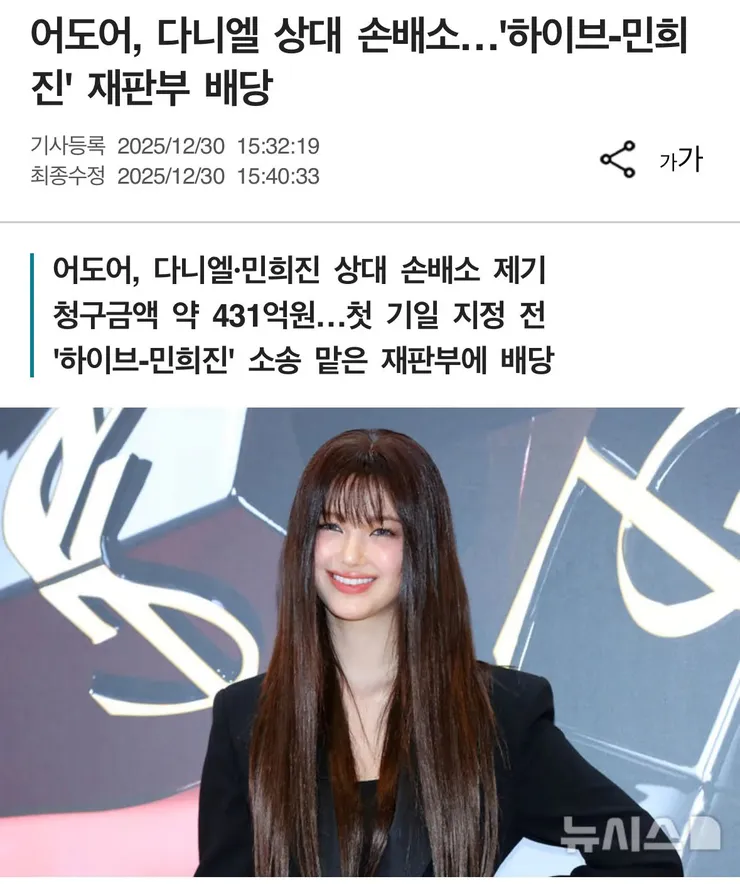 어도어, 다니엘에게 손배소 시작