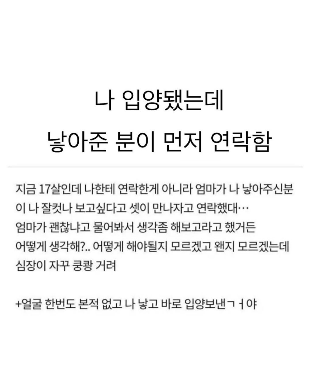 입양됐는데 낳아준 생모가 먼저 연락함