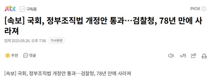 78년만에 '검찰청 폐지' 본회의 통과