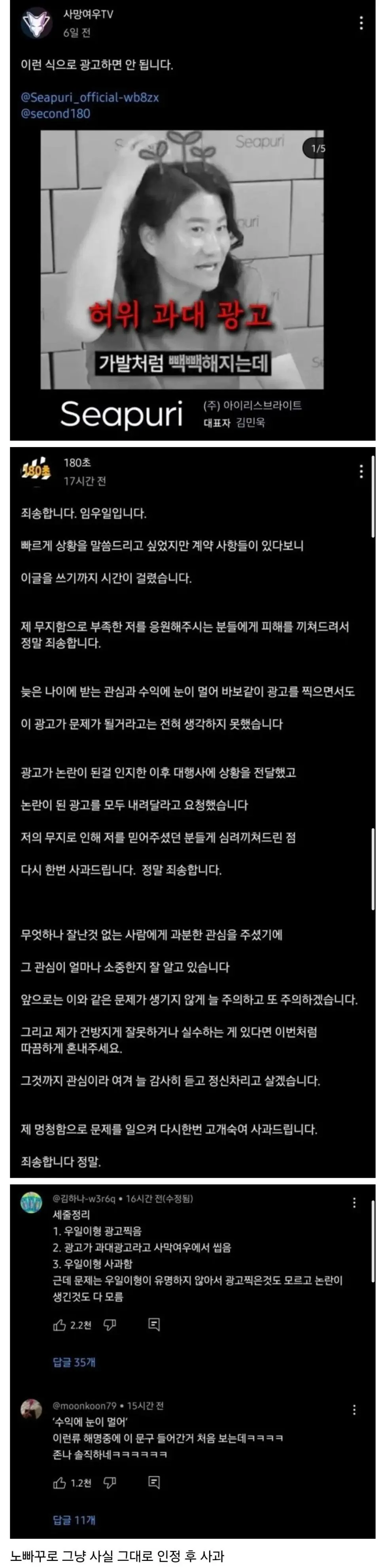 사망여우한테 저격맞고 깔끔하게 사과한 연예인 甲