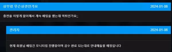 먹튀 피해를 당한 유저분의 말에 따르면 사건이 발생한 2024년 1월 8일