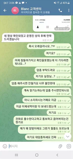 아이디 차단하고 텔레그램 고객센터도 차단시키네요