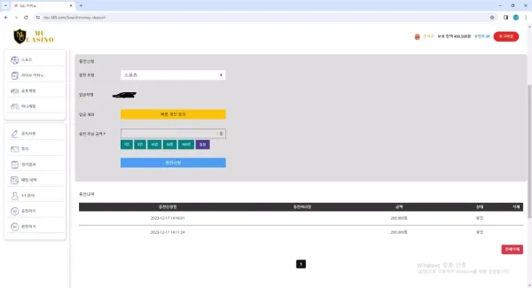 바카라 배팅 후 당첨금을 환전 신청했는데 설마 45만원을 먹튀할까하고 기다렸는데